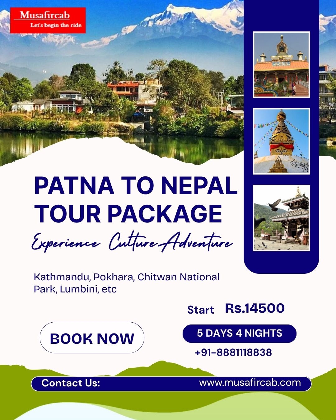 The Patna to Nepal Tour Package with Musafircab offers a comprehensive journey through Nepal’s diverse cultural, spiritual, and natural landscapes. Whether you want to meditate beside a Himalayan lake, visit age-old temples, or enjoy stunning mountain views, this tour ensures that every moment is memorable. Musafircab provides convenience, safety, and comfort, making your Nepal travel experience smooth and enriching from start to finish.