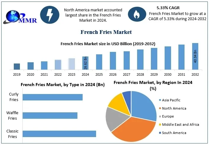 Maximize Market Research, a prominent business consulting firm, has published an in-depth report on the French Fries Market . The study delivers key business insights such as demand trends, pricing analysis, and a detailed review of the competitive landscape. It thoroughly assesses the current market conditions and includes forecasts for the French Fries Market through the year 2030.