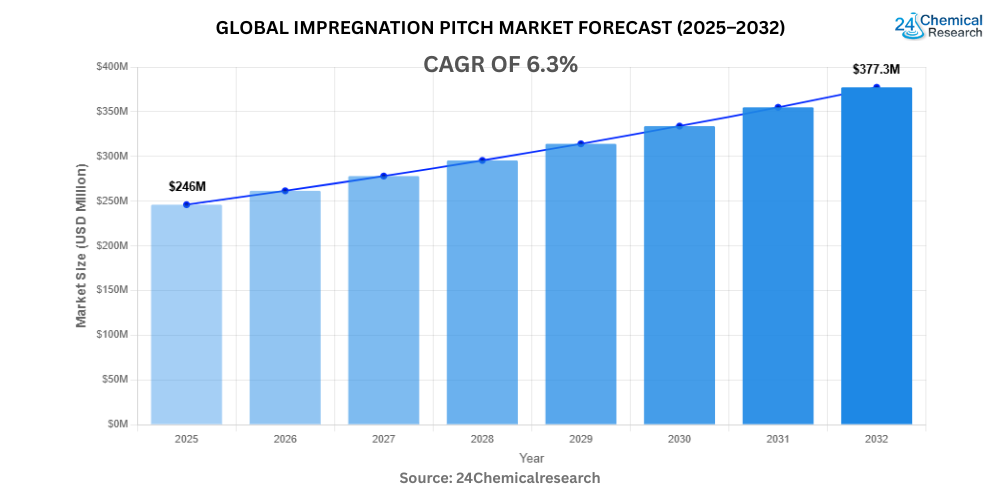Global Impregnation Pitch Market is poised for steady growth, with its valuation reaching USD 246 million in 2024. According to the latest industry analysis, the market is projected to grow at a CAGR of 6.3%, reaching approximately USD 373 million by 2032.