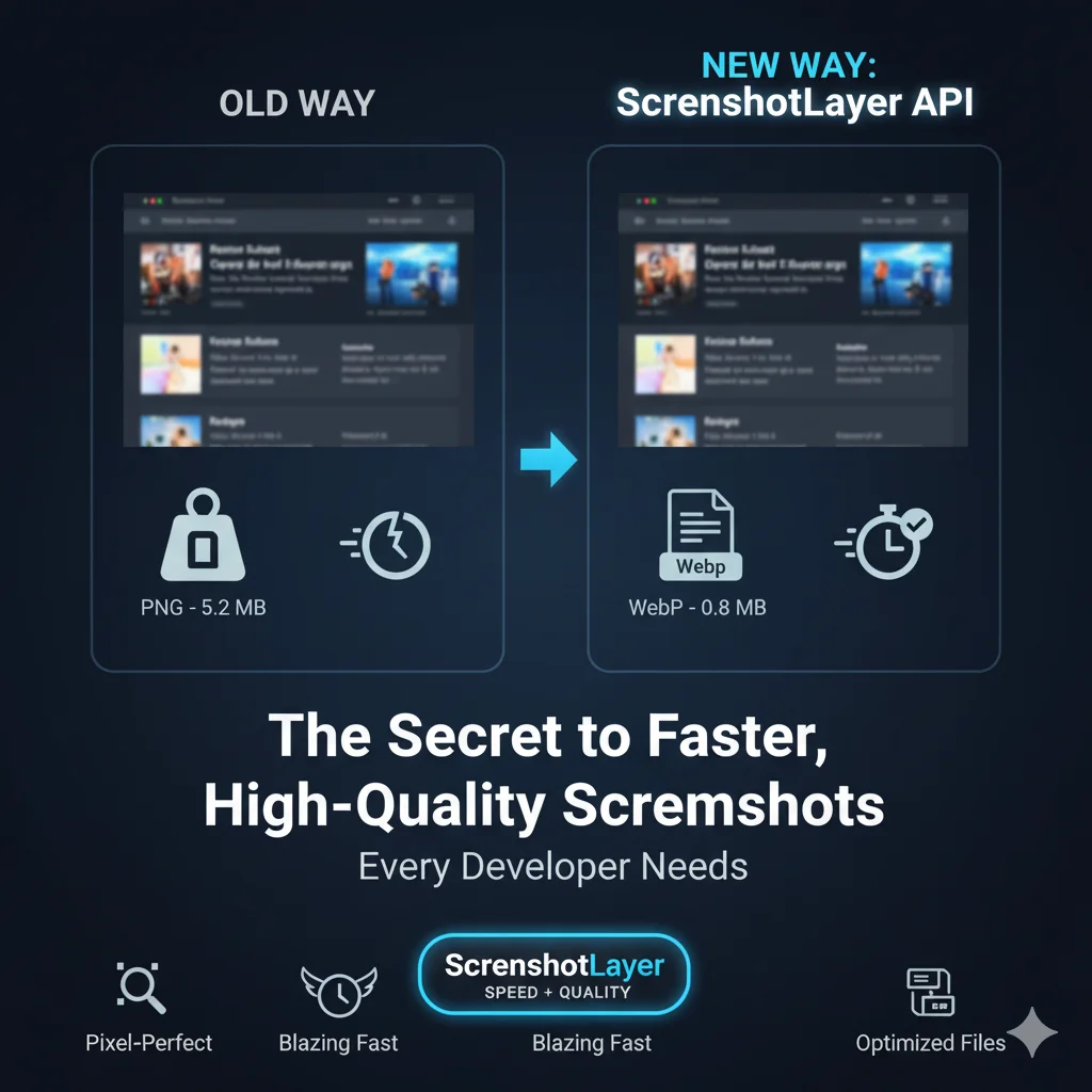 Quality is useless if screenshots take too long to generate. A fast screenshot API solves that by optimizing processing and output formats, especially when paired with modern formats like WebP.