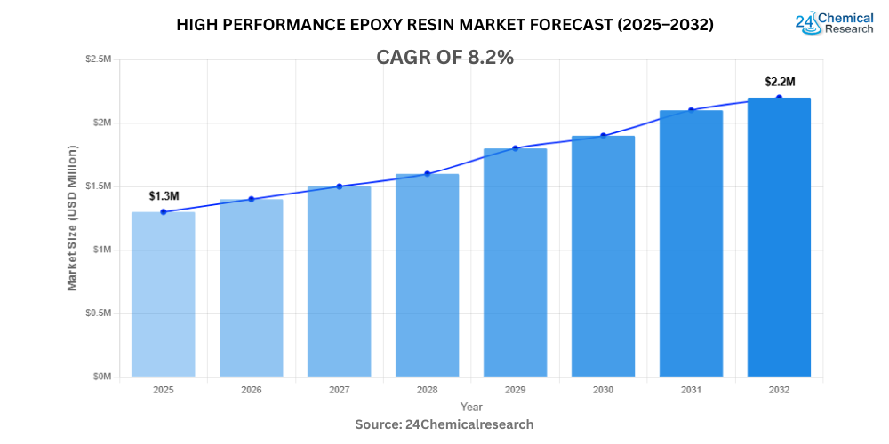 Global high performance epoxy resin market size was valued at USD 1.28 billion in 2024. The market is projected to grow from USD 1.36 billion in 2025 to USD 2.50 billion by 2032, exhibiting a CAGR of 8.2% during the forecast period.