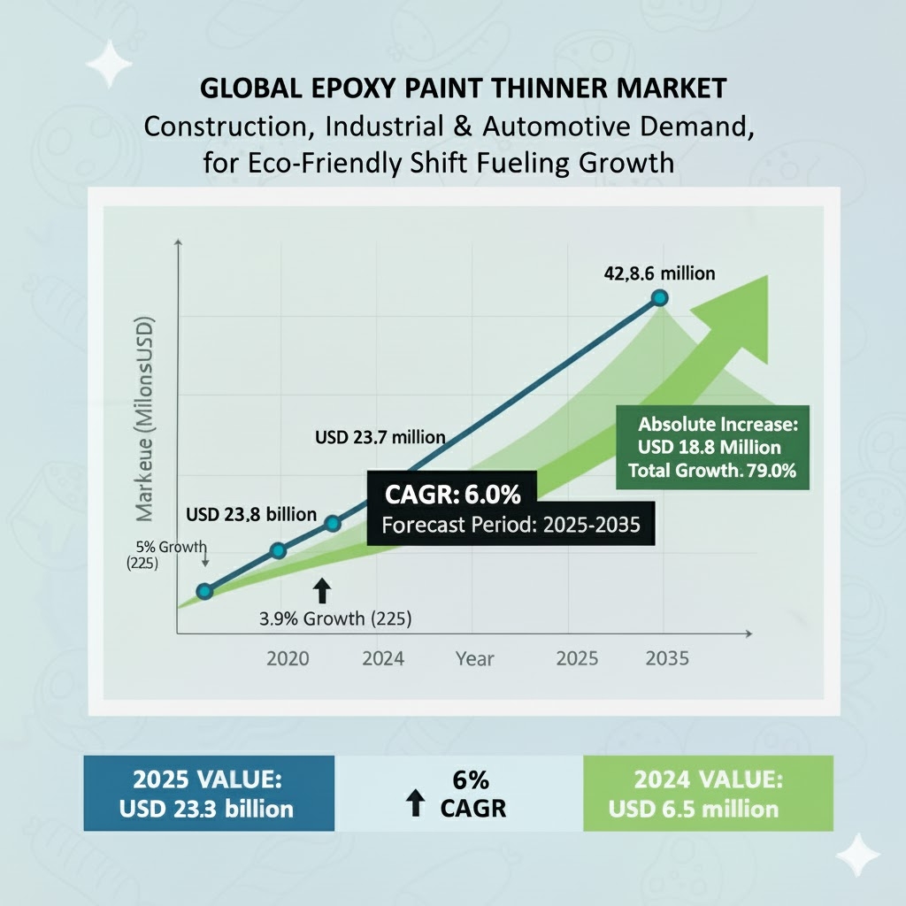 The FMI report, “Epoxy Paint Thinner Market Size, Share, and Forecast 2025–2035,” projects an incremental USD 18.8 million in revenue over the decade, driven by shifts toward sustainable solvents in construction, automotive, and marine sectors.