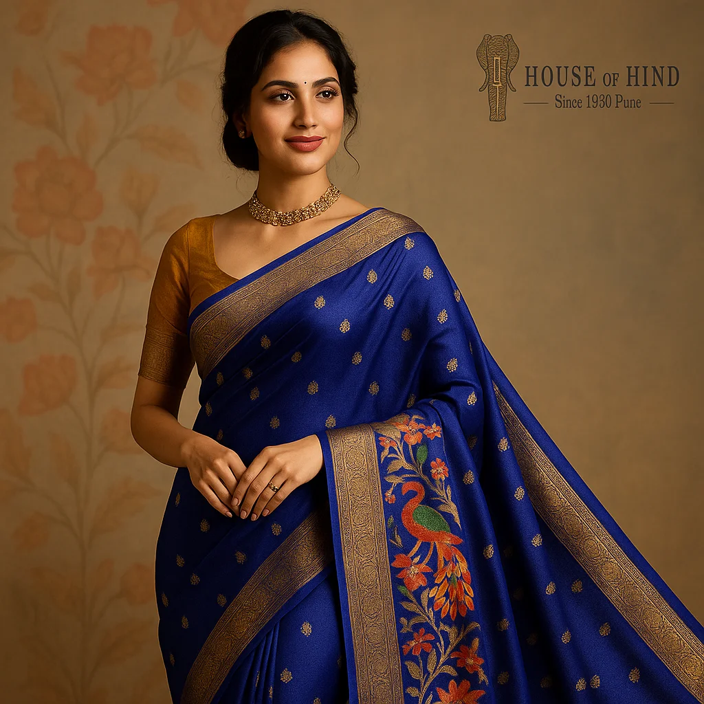 The store curator soon brought out a special collection — the Heritage Paithani Line by House of Hind. These sarees weren’t mass-produced. They were woven by master craftsmen whose skills had been passed down for generations.