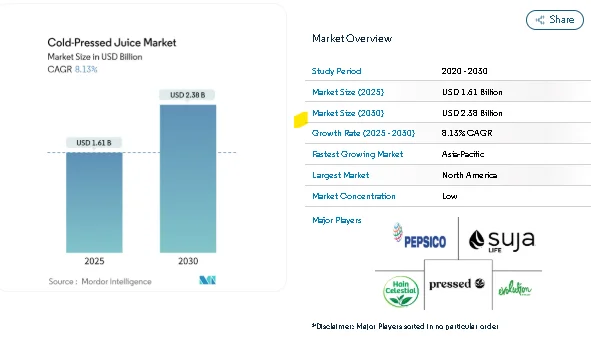 As cold pressed juice becomes more accessible through supermarkets, cafés, and online ordering, the market will continue strengthening its presence across both developed and emerging regions. Brands that offer transparency, high-quality ingredients, and convenience-driven formats are likely to outperform in the coming years.