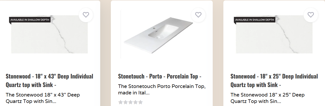 Your vanity top should match (or elevate) your current décor—whether you prefer warm tones, cool greys, or dramatic veining.