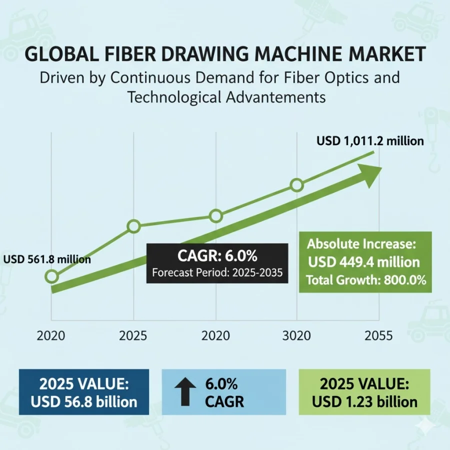 The FMI report, “Fiber Drawing Machine Market Size, Share, and Forecast 2025–2035,” projects an incremental USD 449.4 million in revenue over the decade, driven by 5G rollouts, data center hyperscaling, and the shift toward automated, low-waste manufacturing systems.
