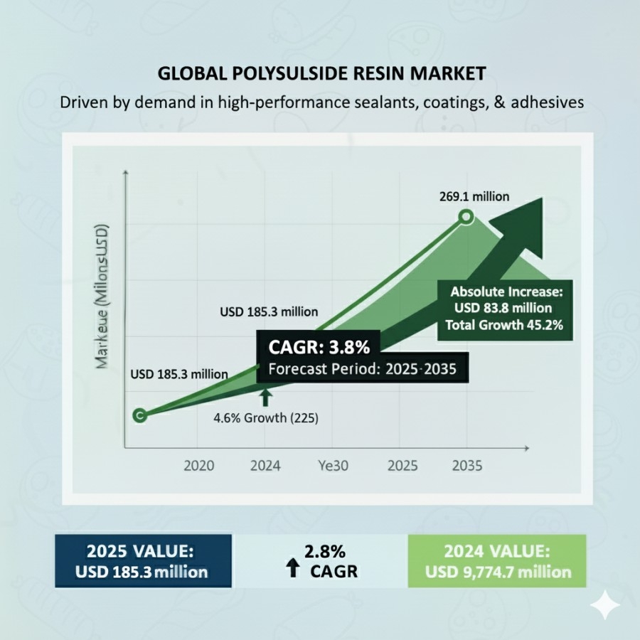 The FMI report, “Polysulfide Resin Market Size, Share, and Forecast 2025–2035,” projects an incremental gain of USD 83.8 million over the decade, driven by superior chemical resistance, flexibility, and durability in extreme environments, alongside a shift toward low-VOC and eco-compliant formulations.
