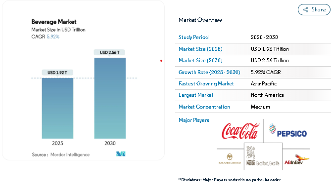 Looking ahead, the global beverages market outlook (2025–2030) suggests sustained growth supported by innovation, health consciousness, and sustainability integration. Consumers are demanding transparency, clean-label ingredients, and functional benefits, pushing companies toward reformulation and digital engagement strategies.