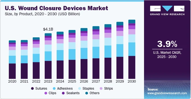The wound closure devices market is set for considerable growth, with projections indicating an increase from USD 14.43 billion in 2024 to USD 21.15 billion by 2030 at a 6.60% CAGR. This upward trend is critically underpinned by the global rise in surgical procedures, an aging population, and the escalating burden of chronic conditions like diabetes, which leads to complex chronic wounds. Continuous technological innovation and product acceptance (with sutures dominating and hospitals being the key end-use segment) ensure that the market will continue to expand to address the universal need for rapid, safe, and effective wound management.