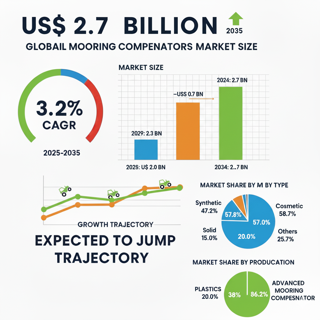 The FMI report, “Mooring Compensators Market Size, Share, and Forecast 2025–2035,” projects an incremental USD 0.7 billion in revenue over the decade, propelled by demand for shock-absorbing solutions in recreational boating, aquaculture, and maritime logistics.