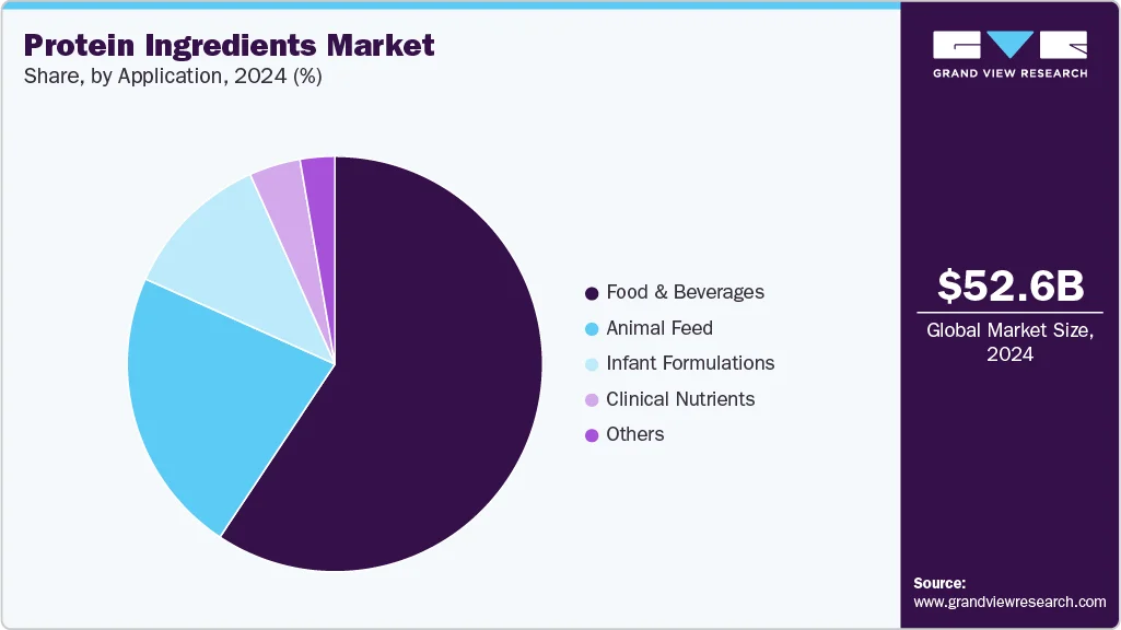 - Product Segment: Animal and dairy proteins accounted for 68.6% of the global protein ingredients market in 2024.