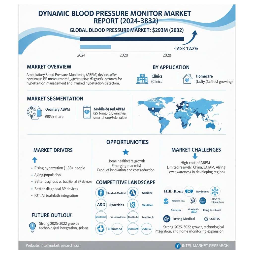 According to a new report from Intel Market Research, the global Dynamic Blood Pressure Monitor market was valued at $131 million in 2024 and is projected to reach $293 million by 2032, growing at a CAGR of 12.2% during the forecast period (2025-2032). This growth is driven by increasing hypertension prevalence, growing geriatric population, and rising awareness of ambulatory blood pressure monitoring advantages.