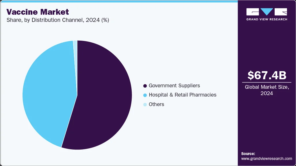 - By type, the subunit vaccines segment dominated the vaccine market in 2024 and is expected to experience rapid growth at a CAGR of 7.67% during the forecast period.