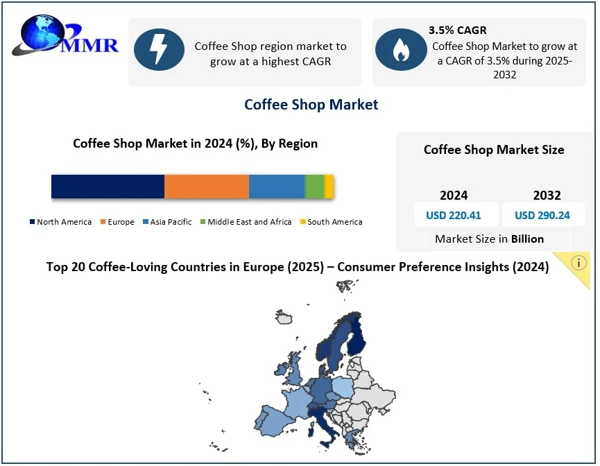 The global Coffee Shop Market was valued at an impressive USD 220.41 billion in 2024, and with the aroma of growth brewing stronger each year, the market is projected to expand at a steady CAGR of 3.5% from 2025 to 2032, ultimately reaching a remarkable USD 290.24 billion by the end of the forecast period — reflecting the world’s ever-growing love for coffee culture and café experiences.
