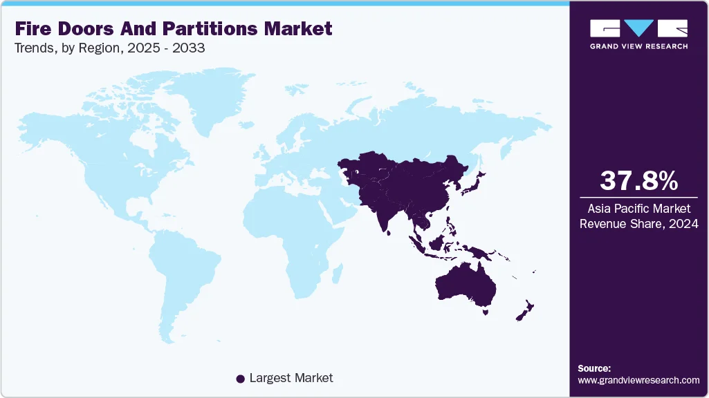 - Regional Dominance: North America held the largest share of the fire doors and partitions market in 2022, driven by stringent building codes and regulations concerning fire safety.