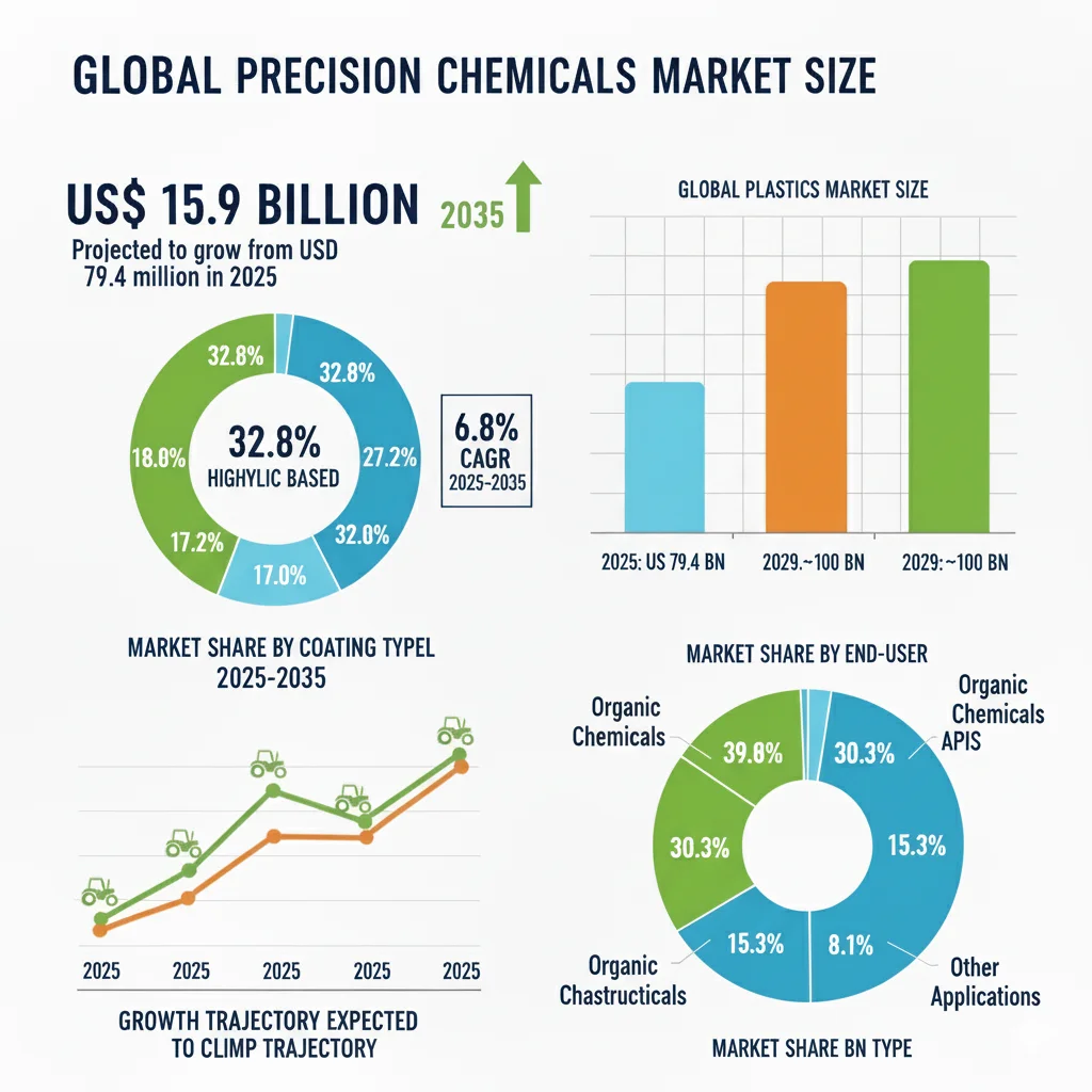 The global precision chemicals market is poised for robust expansion through 2035, fueled by surging demand in pharmaceuticals, electronics, and biotechnology amid stricter purity standards and innovative synthesis techniques. According to Future Market Insights (FMI), the market is valued at USD 79.4 billion in 2025 and is projected to reach USD 153.9 billion by 2035, expanding at a compound annual growth rate (CAGR) of 6.8%.