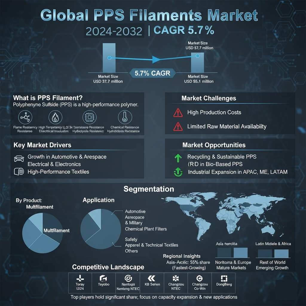 According to a new report from Intel Market Research, the global PPS Filaments market was valued at USD 37.7 million in 2024 and is projected to reach USD 55.1 million by 2032, growing at a CAGR of 5.7% during the forecast period (2025–2032). This growth is propelled by the increasing demand for high-performance, flame-retardant materials in automotive, aerospace, and electrical industries, especially in the Asia-Pacific region.