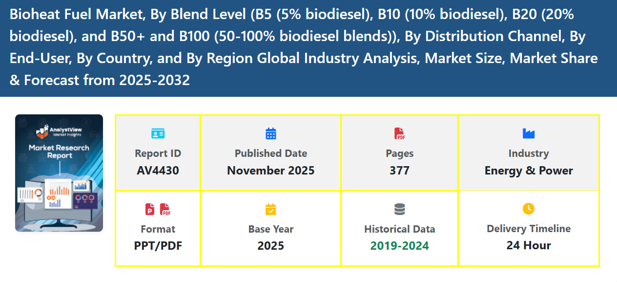 The Bioheat Fuel Market is gaining significant momentum as global energy systems shift toward sustainable, low-carbon solutions. Bioheat fuel—produced by blending traditional heating oil with renewable biodiesel derived from sources such as soybean oil, animal fats, used cooking oil, and algae—offers an immediate pathway to reduce emissions without requiring major infrastructure changes. This makes it an attractive alternative for residential, commercial, and industrial heating applications seeking cleaner and more efficient energy options.