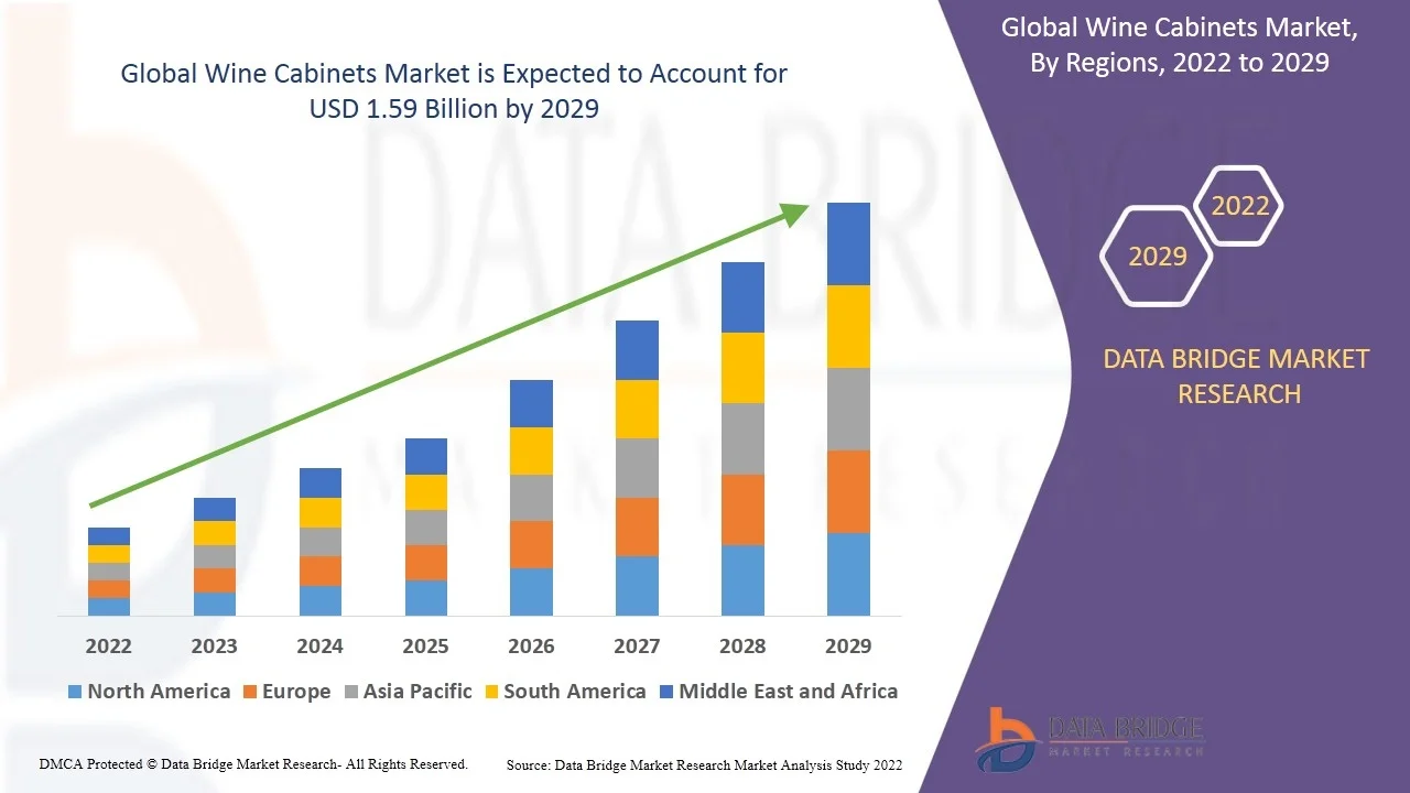 The wine cabinets market size was valued at USD 1.59 billion in 2029 and is expected to grow at a Compound Annual Growth Rate (CAGR) of 5.80% from 2022 to 2029. This robust trajectory is a direct result of several key market drivers: