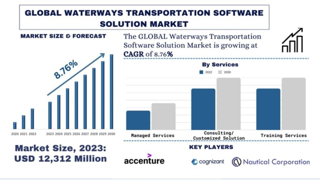 The report suggests that furthermore, globalization and ever ever-increasing complexity of supply chains are some of the major factors driving the waterway transportation software solution to help optimize operational efficiency while minimizing the cost. Waterway transportation software solutions provide real-time tracking capabilities, enabling stakeholders to monitor cargo movements, anticipate potential disruptions, and make informed decisions to mitigate risks and optimize supply chain operations. Additionally, the waterway transportation industry generates vast amounts of data, and leveraging this data effectively is crucial for informed decision-making. Advanced software solutions incorporate powerful analytics and reporting capabilities, empowering stakeholders to gain valuable insights, identify trends, and make data-driven decisions that drive growth and profitability. Factors such as these are developing a favorable environment for the widespread adoption of waterway transportation software solutions.