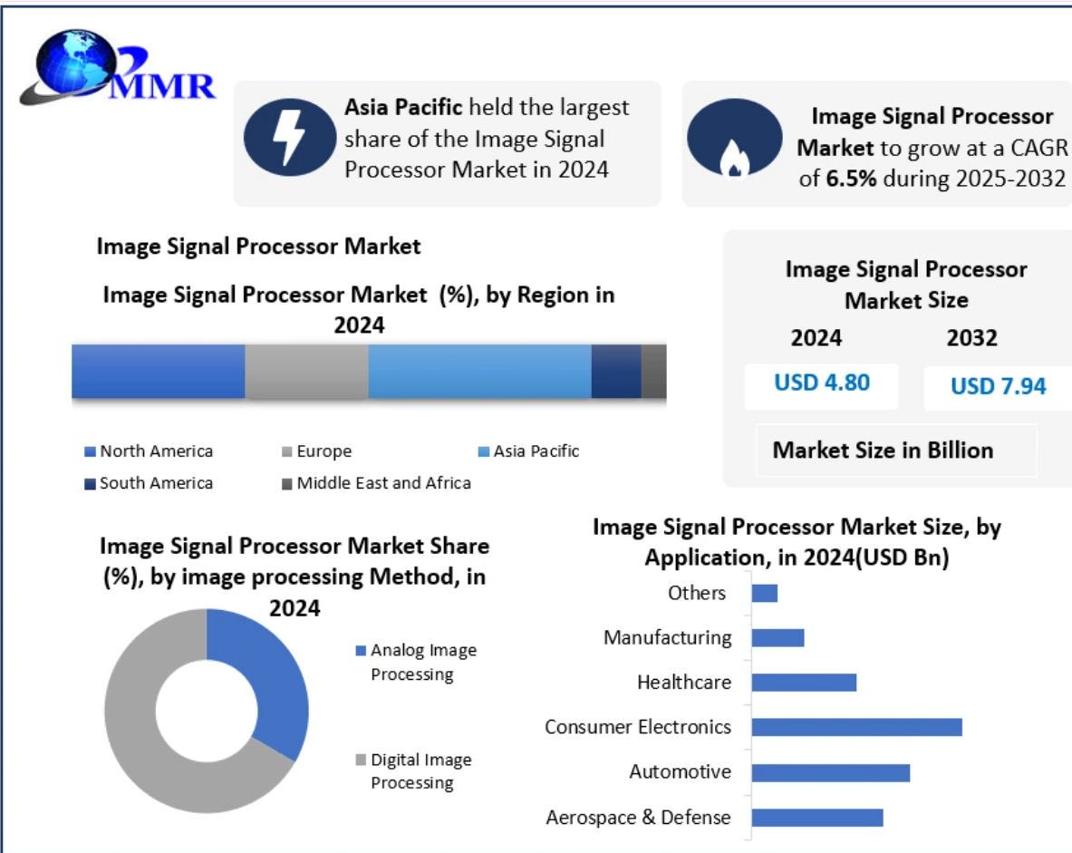 Maximize Market Research is a Business Consultancy Firm that has published a detailed analysis of the “ Image Signal Processor Market”. The report includes key business insights, demand analysis, pricing analysis, and competitive landscape. The analysis in the report provides an in-depth aspect at the current status of the Image Signal Processor Market.