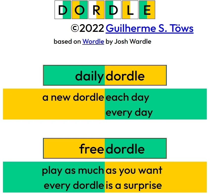 Dordle is similar to Wordle in terms of gameplay. This title includes two types of games: free dordle and daily dordle. Both free play and daily modes function the same way. The only difference was that participants in the daily mode always began with the same word, no matter what time of day it was. In free play mode, you will receive new random puzzles to complete whenever you want.