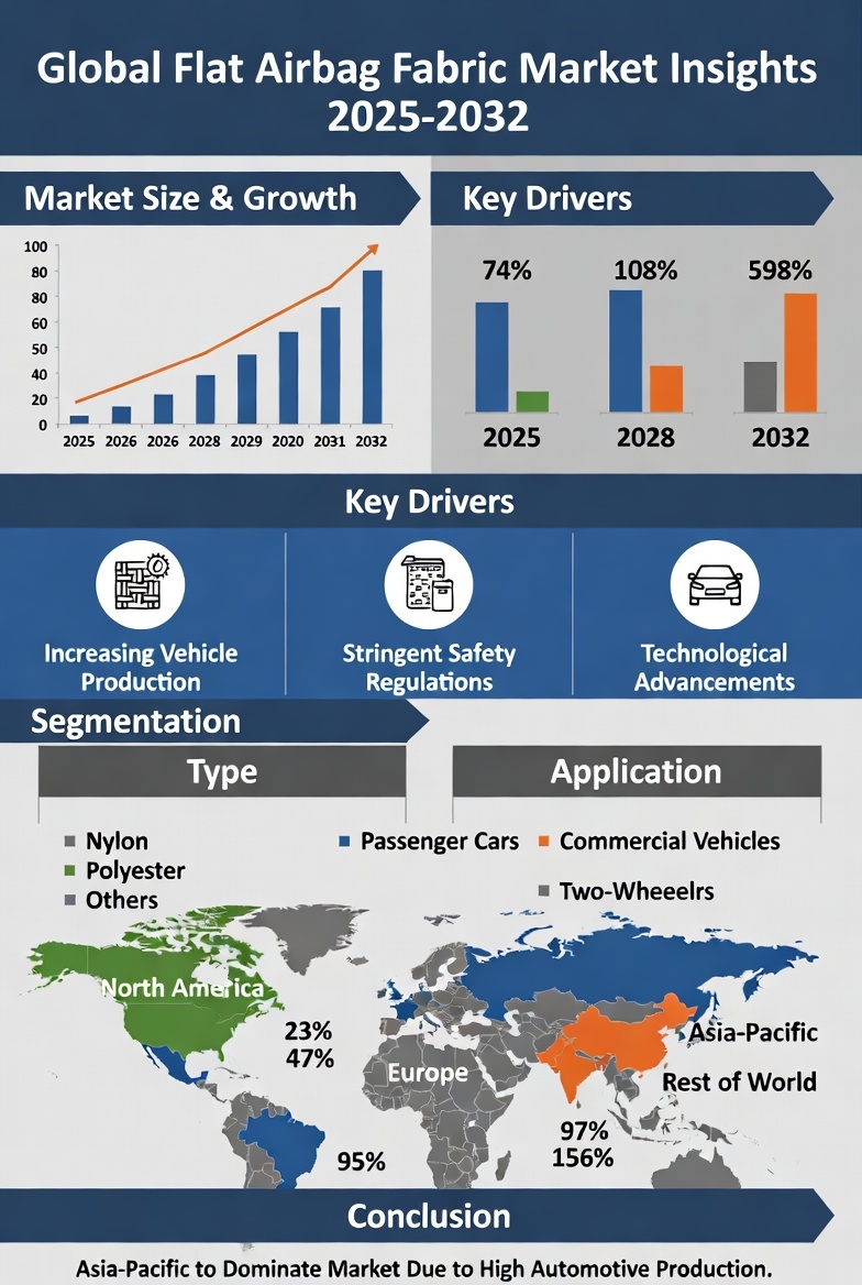 According to a new report from Intel Market Research, the global Flat Airbag Fabric market was valued at USD 486 million in 2024 and is projected to reach USD 627 million by 2032, growing at a CAGR of 3.8% during the forecast period (2025-2032). This growth is propelled by the increasing demand for automotive safety, stringent safety regulations, and the rising production of vehicles globally.