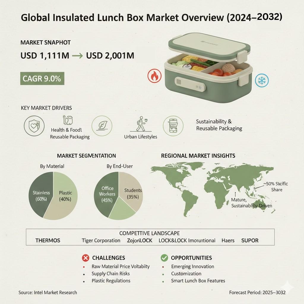 According to a new report from Intel Market Research, the global Insulated Lunch Box market was valued at USD 1,111 million in 2024 and is projected to reach USD 2,001 million by 2032, growing at a CAGR of 9.0% during the forecast period (2025–2032). Insulated lunch boxes are specialized food containers designed to maintain the temperature of stored food items for extended periods. While they share some thermal principles with insulated bottles, their design and construction differ significantly to accommodate larger food volumes and different usage patterns.