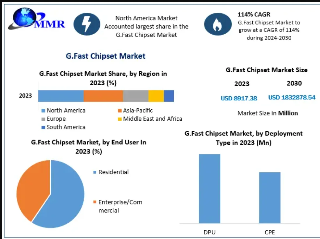 G.Fast Chipset Market is expected to reach USD 1832878.54 Mn. by 2030, at a CAGR of 114% during the forecast period.