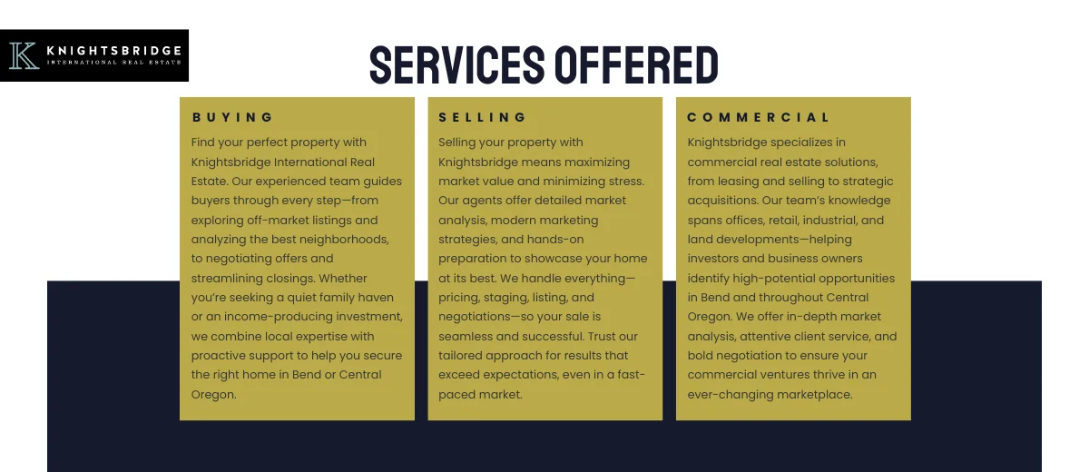 Whether you’re buying your first home or selling a premium property, Knightsbridge International Real Estate offers the expertise and support you need. Learn more at https://kbire.com/ and connect with a trusted Bend real estate agent today.