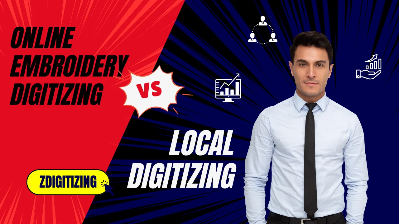Local digitizing involves nearby professionals who meet clients face-to-face. Traditional shops maintain in-house digitizers for complete embroidery services.