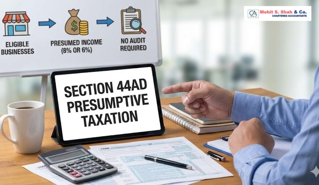 This article by Mohit S. Shah & Co explains the meaning, scope, eligibility, calculation method, advantages, limitations, and compliance requirements related to Presumptive Taxation for Small Businesses in India, with specific reference to Section 44AD and ITR filing for small businesses in India.