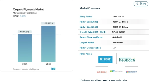 The organic pigments market continues to show steady expansion as color-critical industries increase their focus on performance, consistency, and regulatory compliance. According to Mordor Intelligence, the global organic pigments market is valued at USD 4.27 billion in 2025 and is forecast to reach USD 5.57 billion by 2030, growing at a CAGR of 5.46% during 2025–2030.