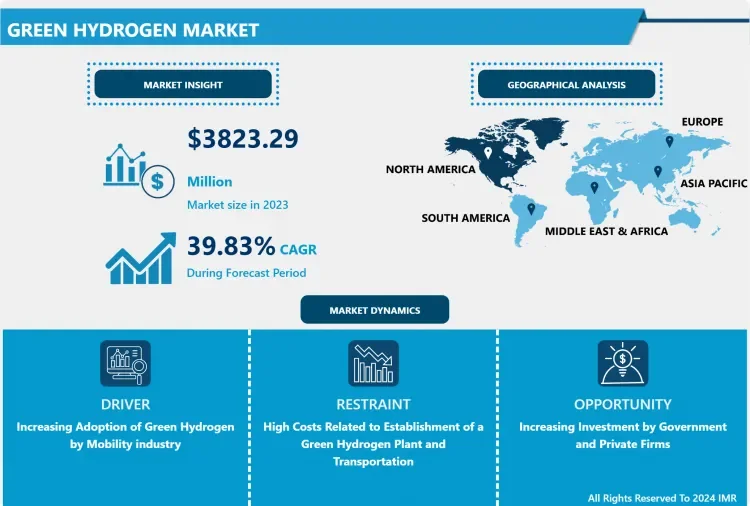 Green Hydrogen Market Size Was Valued at USD 3823.29 Million in 2023 and is Projected to Reach USD 78,134.07Million by 2032, Growing at a CAGR of 39.83% From 2024-2032.