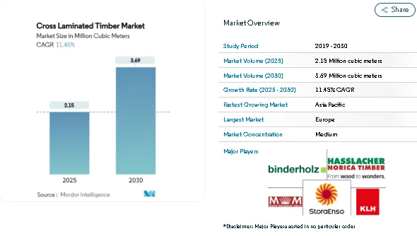 The global cross laminated timber market is gaining steady momentum as construction stakeholders seek reliable structural materials that align with environmental targets and faster project delivery models. According to Mordor Intelligence, the market size is estimated at 2.15 million cubic meters in 2025 and is projected to reach 3.69 million cubic meters by 2030, growing at a CAGR of 11.45% during the forecast period.