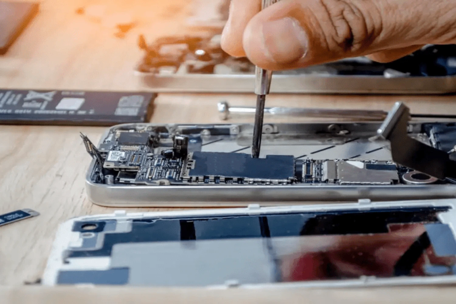 Apple devices are engineered with high integration—soldered components, strong waterproof adhesives, delicate ribbon cables, and proprietary sensors that require exact handling. Repairs by untrained staff commonly cause hidden damage that may not appear immediately but shows up days or weeks later: torn flex cables leading to backlight or touch failure, static electricity (ESD) harming logic boards, improper adhesive reapplication allowing dust and moisture ingress, or misaligned displays causing dead zones or pressure on internal parts.