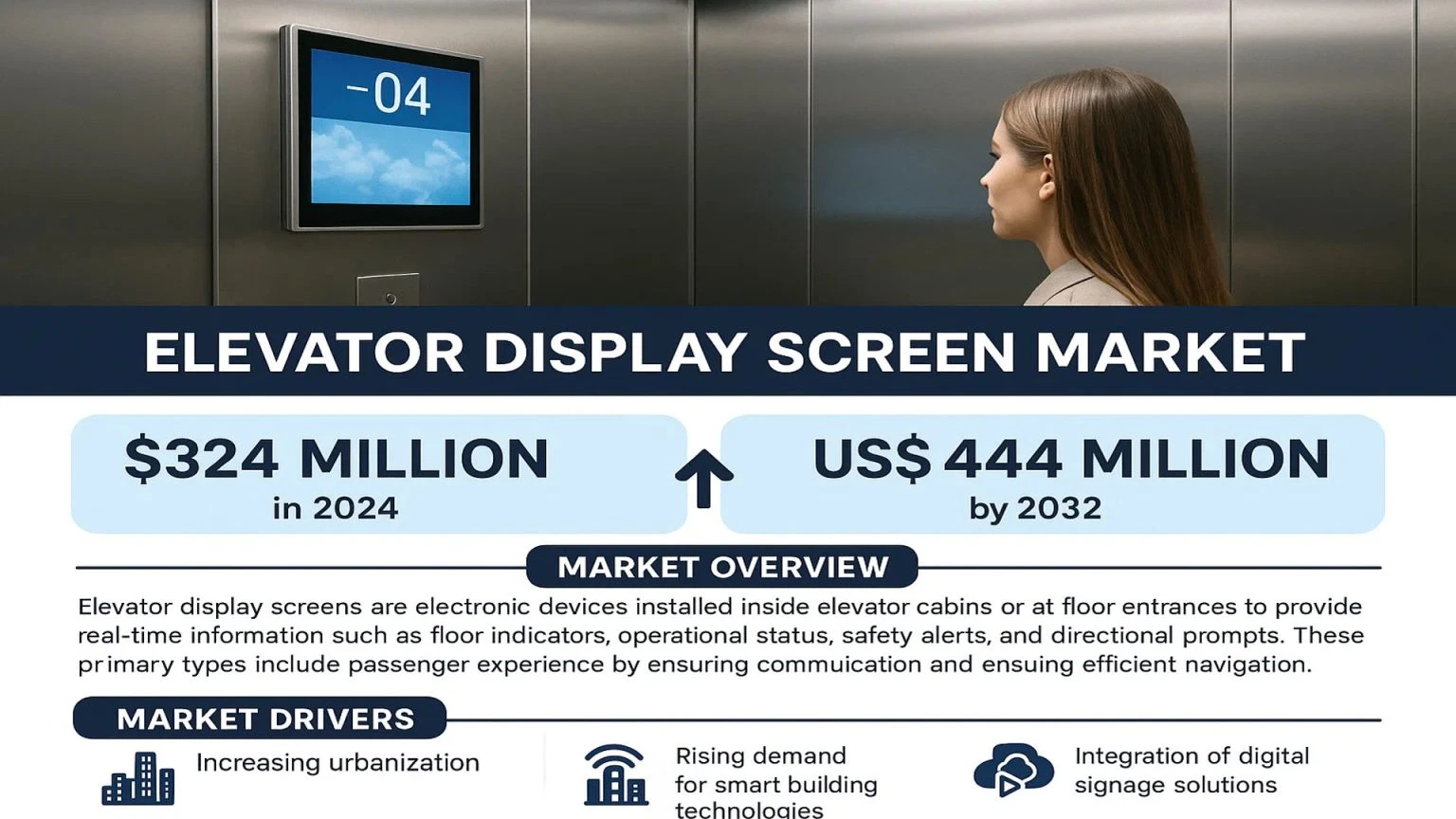 Elevator Display Screen Market, valued at USD 324 million in 2024, is poised for steady growth, projected to reach USD 444 million by 2032. This expansion, representing a compound annual growth rate (CAGR) of 4.7%, is detailed in a comprehensive new report published by Semiconductor Insight. The study underscores the critical role of these advanced digital interfaces in enhancing passenger experience, safety, and operational efficiency within modern vertical transportation systems.