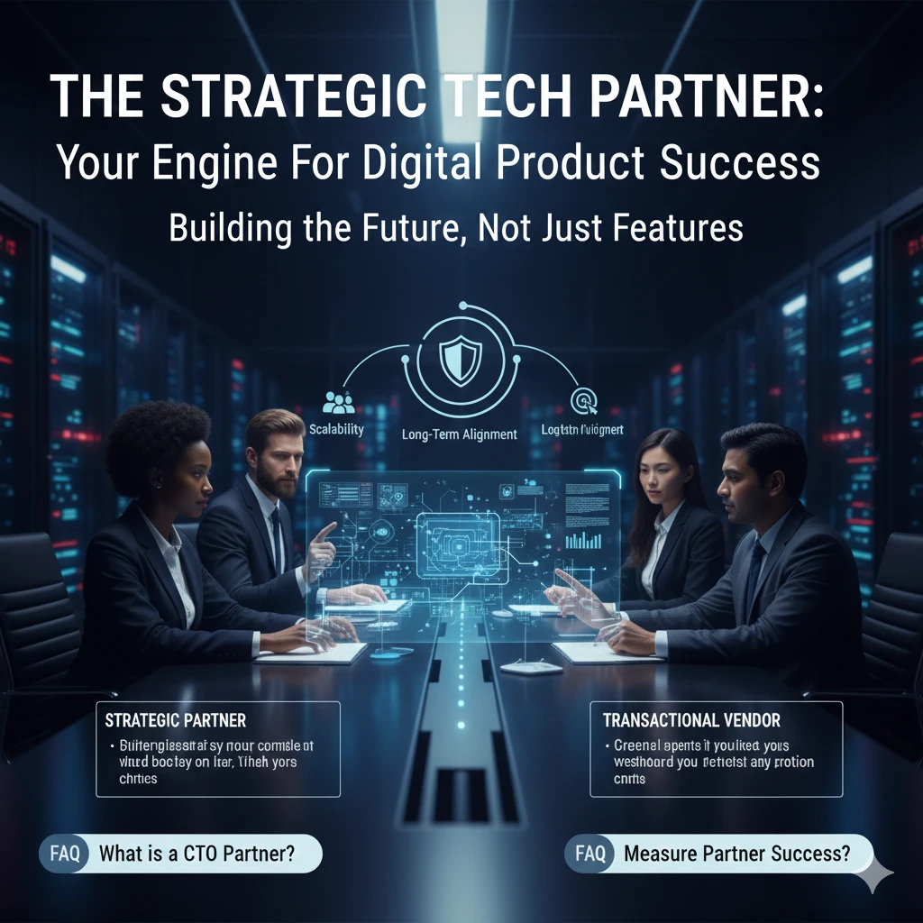 A CTO Partner provides strategic technology leadership, guiding product architecture, scalability, and technical decision-making without the cost of a full-time executive.