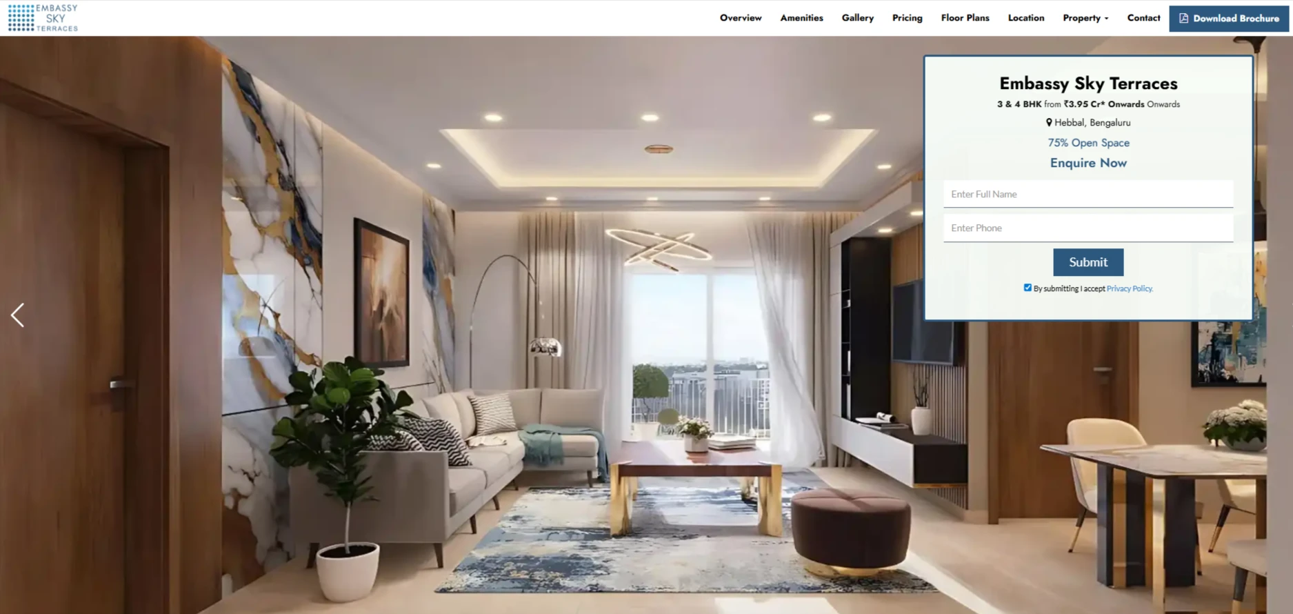 Embassy Sky Terraces seeks to offer the elegance world of living through luxury within one of the most sought after locations in Bangalore. This project stands out as an epitome of the modern architecture blended with comfort and exclusivity for those who have an appreciation for dignity, space, and a sophisticated lifestyle. Hebbal, being the premier area within which this project stands, offers a fine sense of serenity and an ideal urban sprawl continuity, thus offering a good proposition for homebuyers and those seeking a long-term investment in Bangalore's ever-green real-estate space.
