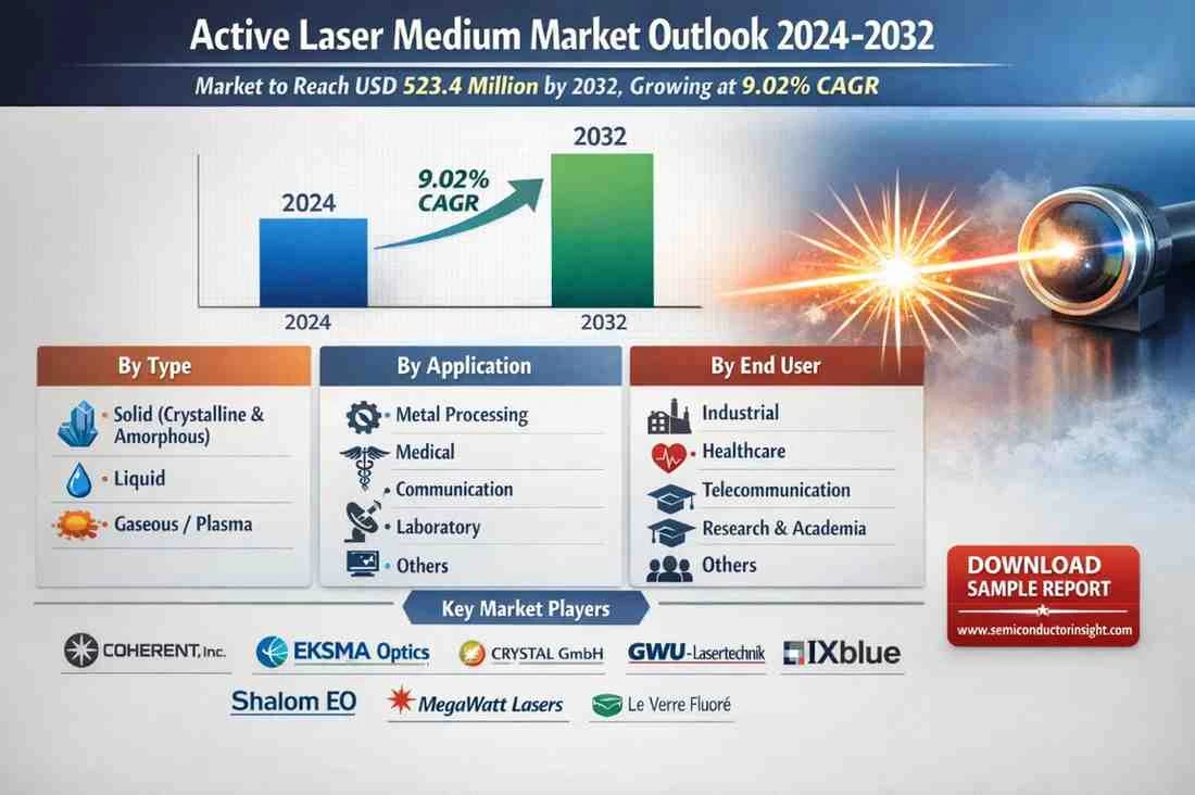 Active Laser Medium Market, valued at USD 287.6 million in 2024, is positioned for robust expansion, projected to reach USD 523.4 million by 2032. This growth trajectory, representing a compound annual growth rate (CAGR) of 9.02% during the forecast period 2025-2032, is detailed in a comprehensive new report published by Semiconductor Insight. The study underscores the indispensable role of these core components in enabling precision laser operations across high-tech manufacturing, medical applications, and advanced research sectors.