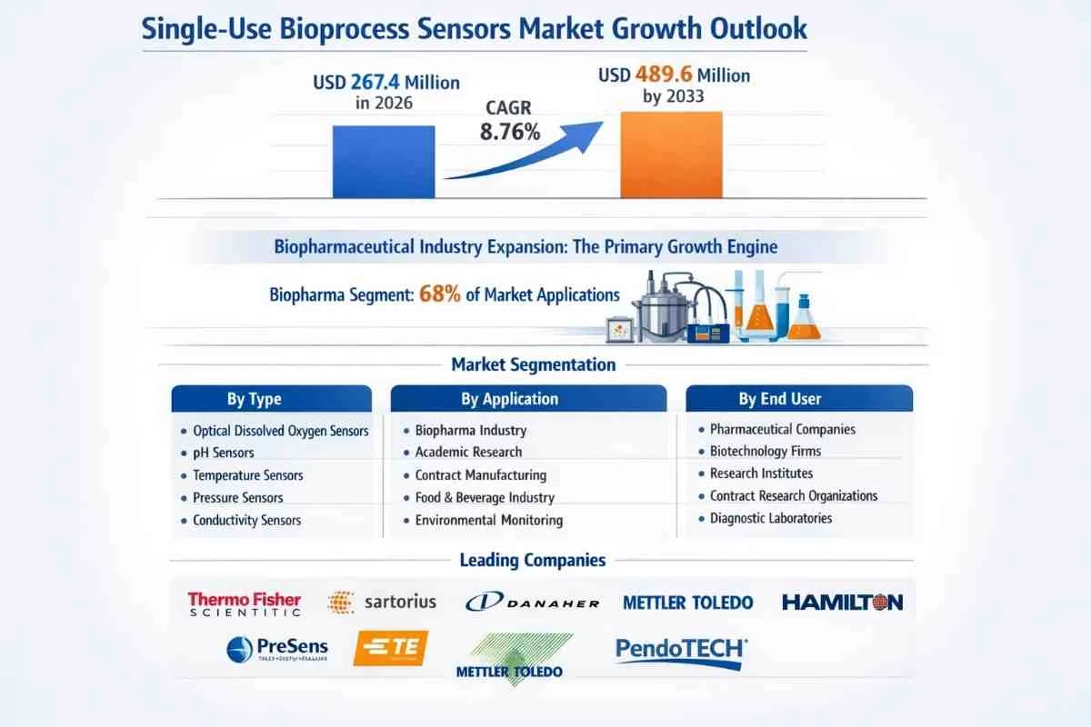 Single-use Bioprocessors Sensors Market, valued at USD 267.4 million in 2026, is poised for substantial growth, projected to reach USD 489.6 million by 2033. This expansion, representing a compound annual growth rate (CAGR) of 8.76% during the forecast period 2026-2033, is detailed in a comprehensive new report published by Semiconductor Insight. The study underscores the critical importance of these disposable monitoring devices in ensuring precision, sterility, and efficiency within modern biopharmaceutical manufacturing processes.