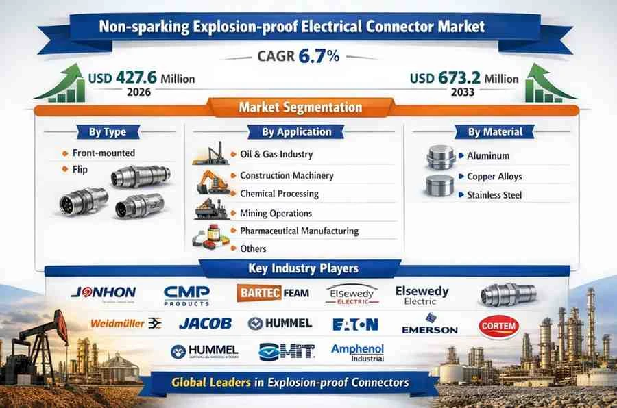 Non-sparking Explosion-proof Electrical Connector Market, valued at USD 427.6 million in 2026, is poised for significant growth, projected to reach USD 673.2 million by 2033. This expansion, representing a compound annual growth rate (CAGR) of 6.7%, is detailed in a comprehensive new report published by Semiconductor Insight. The study underscores the critical role these specialized safety components play in preventing ignition sources within hazardous environments across multiple high-risk industries.