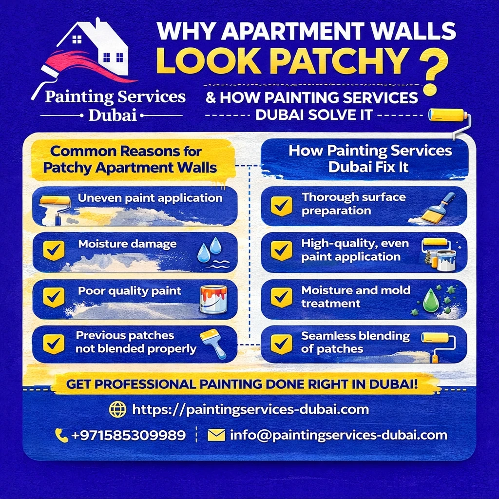 In this blog, we explain why apartment walls look patchy, what mistakes cause it, and how Painting Services Dubai delivers smooth, clean, and long-lasting results. We also share simple tips and expert solutions that help apartments look fresh and beautiful again.
