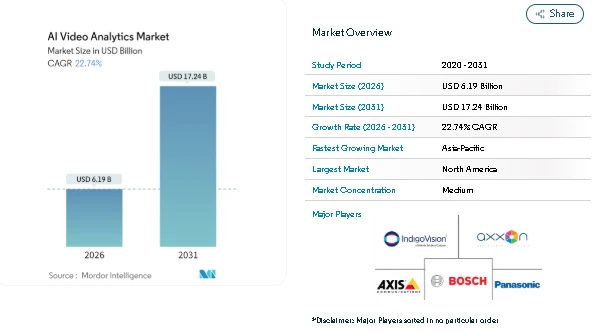 The AI Video Analytics Market is steadily becoming a core part of modern surveillance, monitoring, and operational intelligence systems. According to Mordor Intelligence, the market is valued at USD 6.19 billion in 2026 and is projected to reach USD 17.24 billion by 2031, reflecting strong momentum driven by security needs, smart-city investments, and wider commercial adoption.