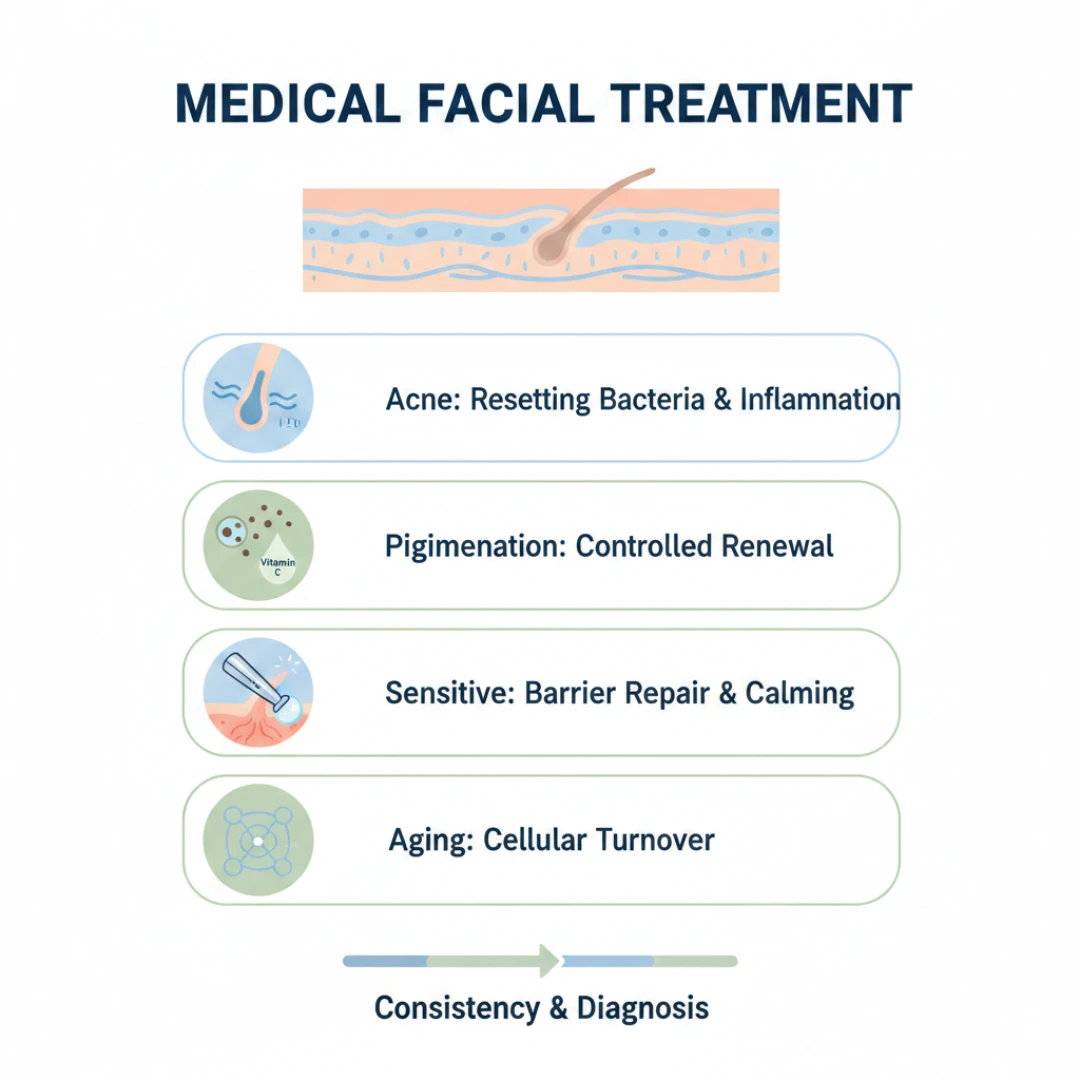 This is where a well-planned medical facial treatment fits into long term skin management rather than one-time correction.