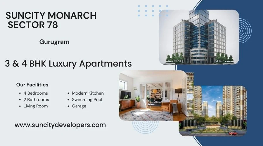 Suncity Monarch Sector 78 is a landmark residential project that redefines luxury living in Gurugram. Designed for modern families and professionals seeking comfort, style, and convenience, this premium development offers thoughtfully planned 3 & 4 BHK luxury apartments. Combining contemporary architecture, high-quality interiors, and lifestyle-focused amenities, It provides a perfect balance of elegance, functionality, and urban sophistication.