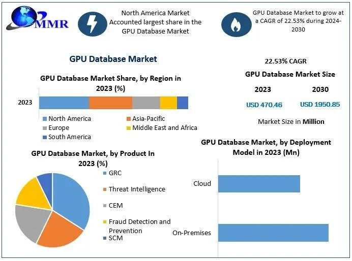 GPU Database Market was valued at US$ 470.46 Mn in 2023 and is expected to reach US$ 1950.85 Mn by 2030, at a CAGR of 22.53% during a forecast period.