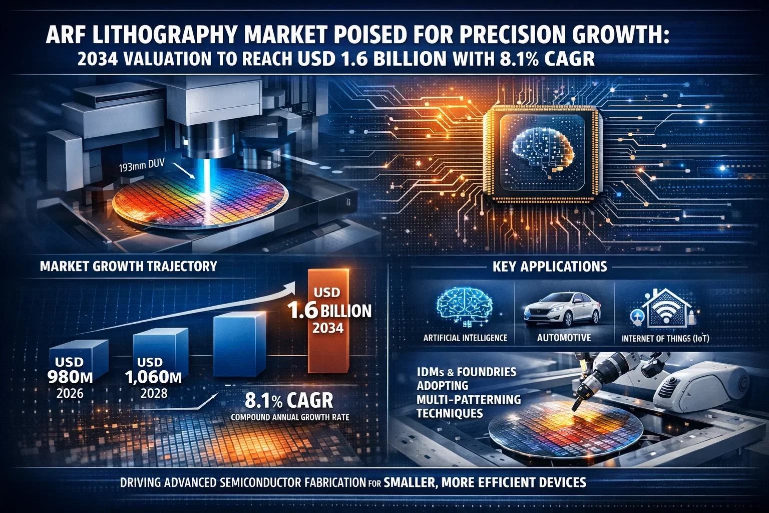 Global ArF Lithography market, valued at USD 980 million in 2026, is projected to grow from USD 1,060 million in 2026 to USD 1,606 million by 2034. This steady trajectory is underpinned by an 8.1% CAGR, driven by the relentless demand for smaller, more efficient semiconductor devices across the AI, automotive, and IoT sectors.