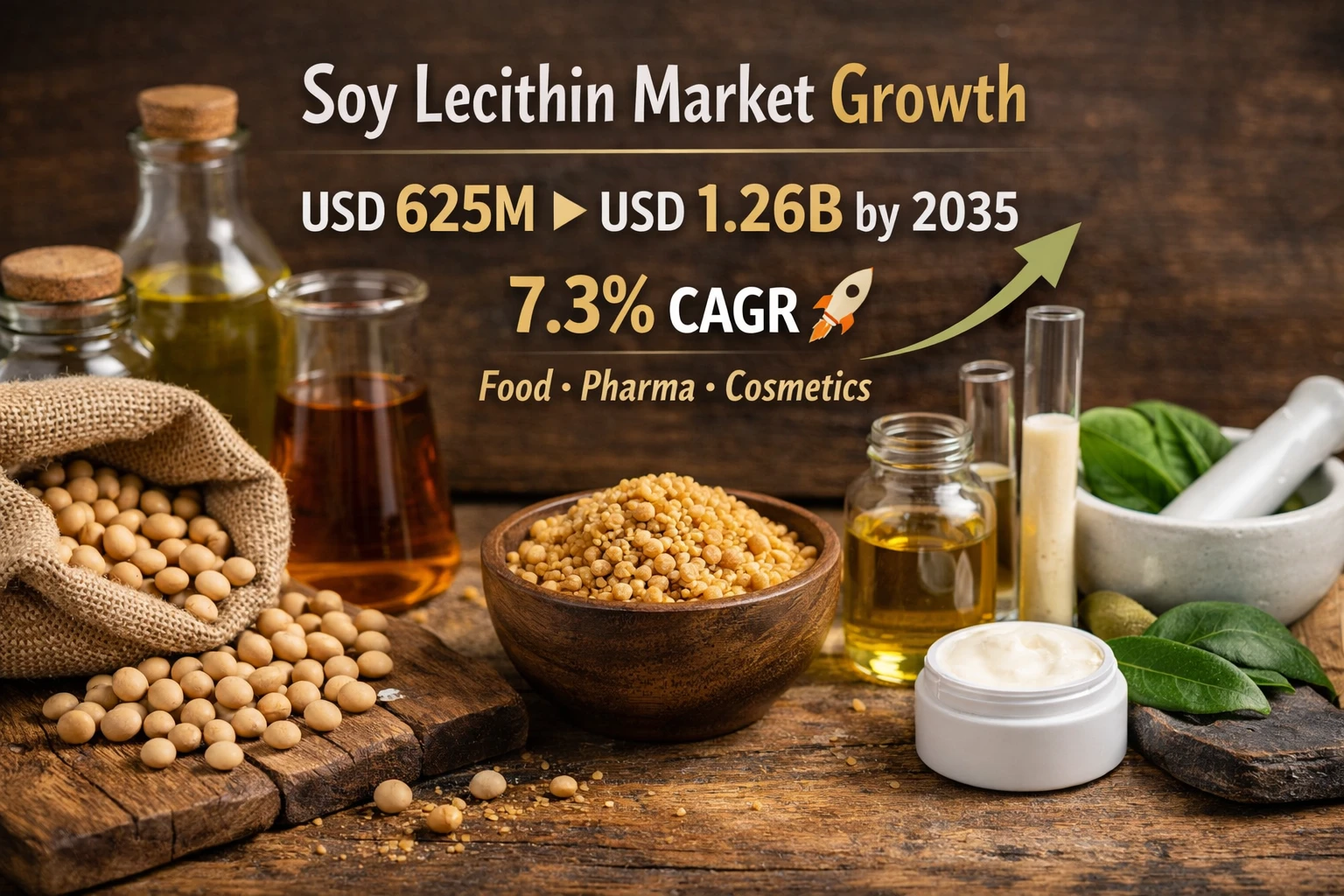 The global soy lecithin market was estimated at USD 625.22 million in 2025 and is expected to show strong growth over the coming years. From USD 670.86 million in 2026, the market is projected to nearly double, reaching USD 1,264.82 million by 2035, at a 7.3% CAGR during the forecast period.