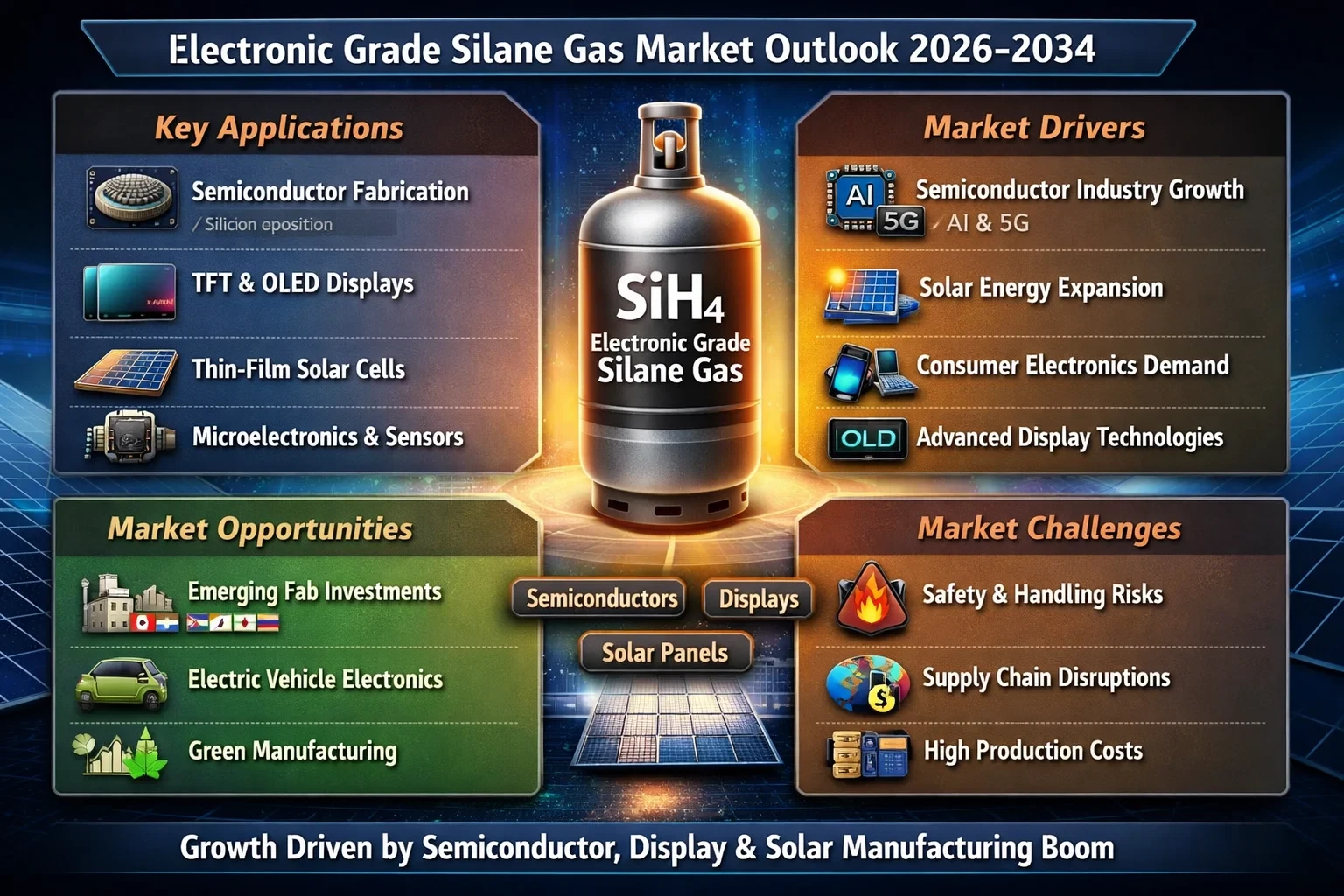 In semiconductor processing, silane gas plays a critical role in depositing silicon films, insulation layers, and anti-reflection coatings. As chipmakers move toward smaller nodes and higher device performance, demand for high-purity process gases such as silane continues to increase across fabs worldwide.